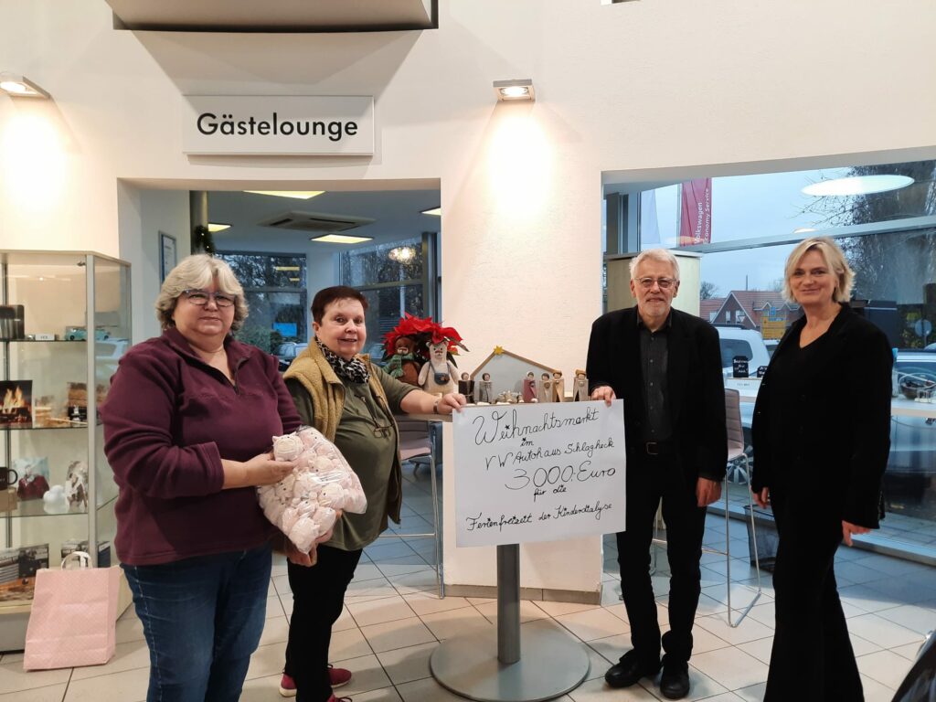 Die Spende von 3000,- Euro konnten Bärbel Eul, Elke Stracke mit Simone Schlagheck im Autohaus Schlaheck in Roxel Dr. Stefan Fründ überreichen.